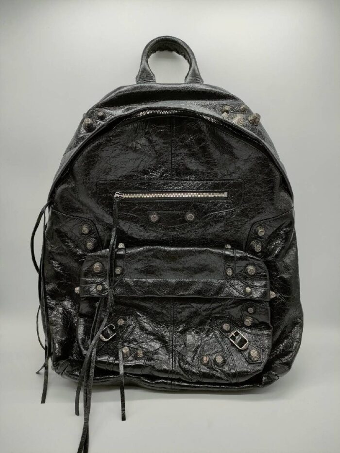 今回お持ち込みいただいたのは、バレンシアガのアイコンとして絶大な人気を誇る 「Le Cagole(ル・カゴール) バックパック」。 エッジの効いたスタッズやアンティーク調の金具、そして上質なラムスキンの質感が融合した、モードで反抗的な魅力を放つ逸品です。バックパックタイプは機能性も高く、感度の高いファッショニスタから熱い視線を浴びている注目のモデルです。
